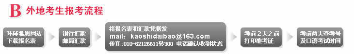 委托代報,可申請各考點各月雅思考試,在http://ielts1.etest.net.cn/cn或考試中心提供的全國雅思考試表上選擇考試時間,考生在報名7天之后通過以上網站或查分電話得知報名結果(不主動通知考生),并記住NEEA用戶號。新學員報名費用:200元/次(雅思);老學員報名費用:100元/次(雅思)。